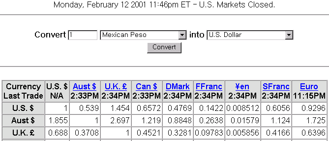 ´Ü°è ȸéÀÌ ¾Æ·¡¿Í °°ÀÌ ¹Ù²î¸é¼ ¼¼°èÀÇ °¢ ÅëÈÀÇ È¯À²À» Á¶È¸ÇÒ ¼ö ÀÖ´Â ÆäÀÌÁö°¡ ¿·È½À´Ï´Ù. ¿øÇÏ´Â ±¹°¡ÀÇ ÈÆó¸¦ ¼±ÅÃÇϰí "Submit" ¹öưÀ» ´©¸£¸é µË´Ï´Ù. ¿©±â¿¡¼´Â "Mexican Pesos"¸¦ ¼±ÅÃÇÏ¿´½À´Ï´Ù.